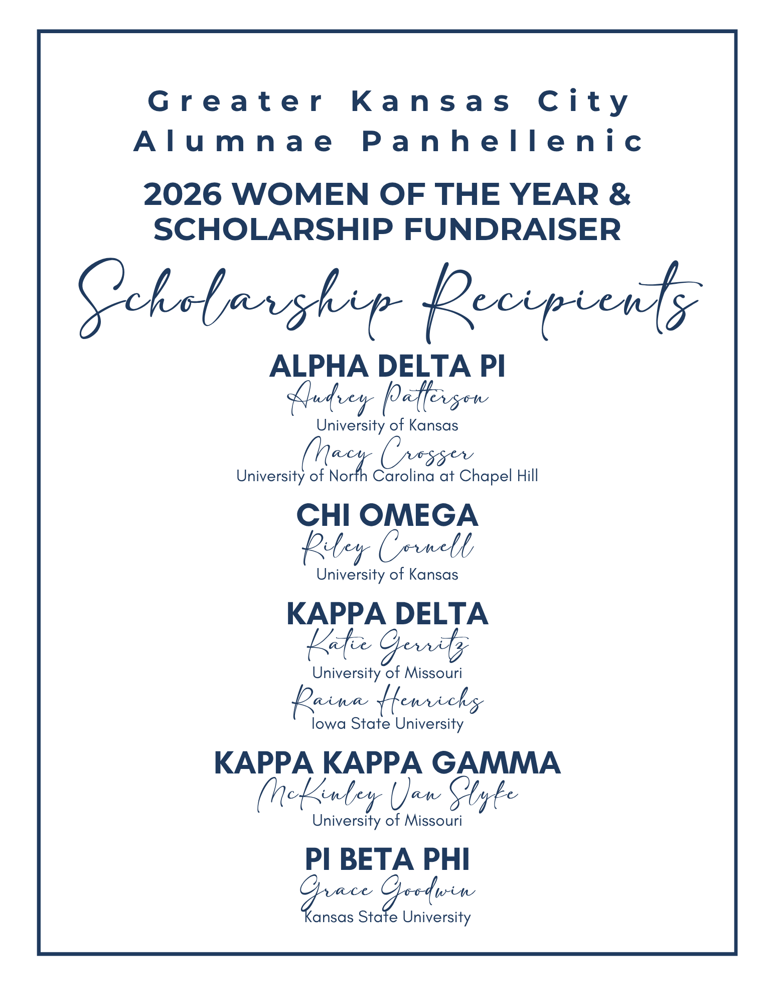 With over $257,000 in scholarships awarded over the last 20 years, the Greater Kansas City Alumnae Panhellenic has awarded scholarships to rising college senior or graduate students.